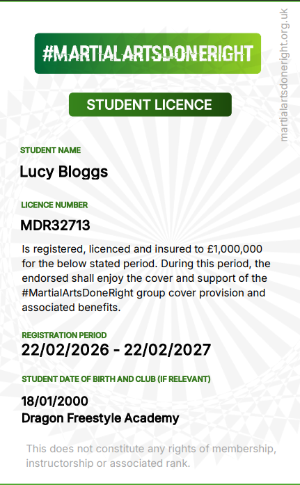 We can offer any and all clubs and instructors the chance to register their students to the #MartialArtsDoneRight scheme from just £0.89 per student, per year for £1,000,000 Martial Arts Student Public Liability Insurance.